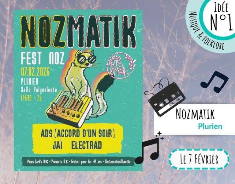 Proposé par l'association les Arts O'Matik, la première édition du Noz Matik mets à l'honneur la Bretagne et ses Fest Noz en revisitant la musique traditionnelle bretonne avec des sonorités electro.
